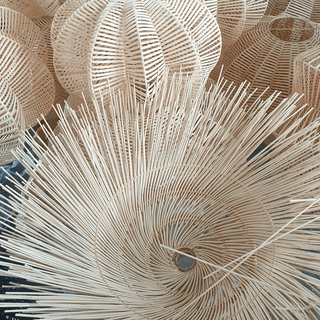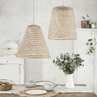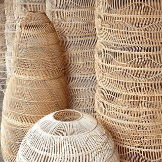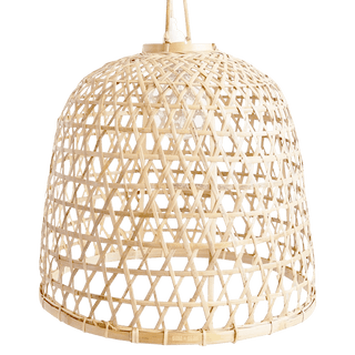 Handmade woven braided bamboo lamp. Its natural style offers a warm touch to any space (living room, bedroom, children’s bedroom, kitchen …)