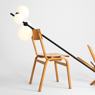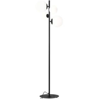 The modern and original floor light with four matte opal globe shades with two diameters (140 and 200mm) is mounted to a heavy weight stem and foot plate. This model is characterised by a very good quality of workmanship and will be great in the bedroom, living room or office, giving the interior a unique atmosphere.