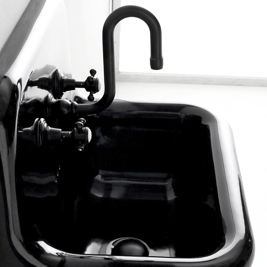 Prodotto da Dyke & Dean in Europa secondo elevati standard moderni. Questo design trae ispirazione dalla rubinetteria degli inizi del secolo. Estremamente resistente e realizzato in ottone elettroplaccato e nero satinato verniciato a polvere.