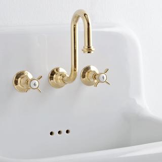 RUBINETTERIA A PARETE BOCCA CIGNO CON MANIGLIA A CROCE