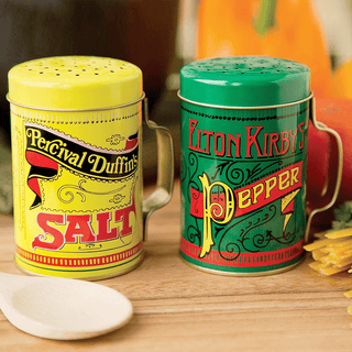This Nostalgic Salt and Pepper Shaker Set features two tinplated metal shakers, a great gift idea.