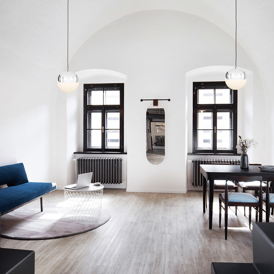 Hand-spun hemisphere dome tops are designed to follow the contours of the glass leaving a clean globe shape. Made from satin powder-coated aluminium, each cap covers the top half of the globe preventing the light from escaping. The minimalist design is striking yet effective in creating a downward lighting effect. Ideal for dining tables, small rooms and hallways. Recommended in groups they are a highly versatile light.