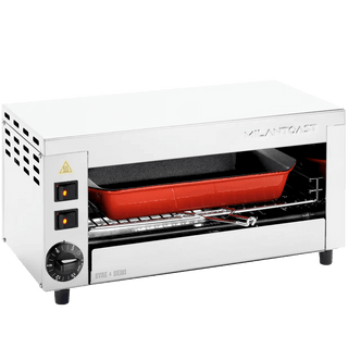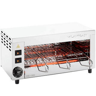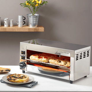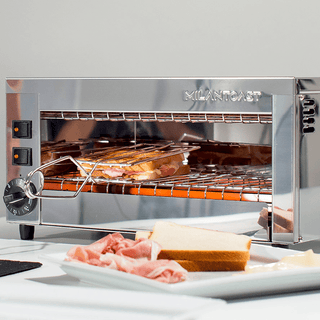 Grazie alle resistenze regolabili separatamente, il dispositivo può essere utilizzato come salamandra, semplicemente selezionando solo la resistenza superiore, ideale per grigliare, tostare dall'alto e rifinire ingredienti come formaggio, mornay e condimenti.