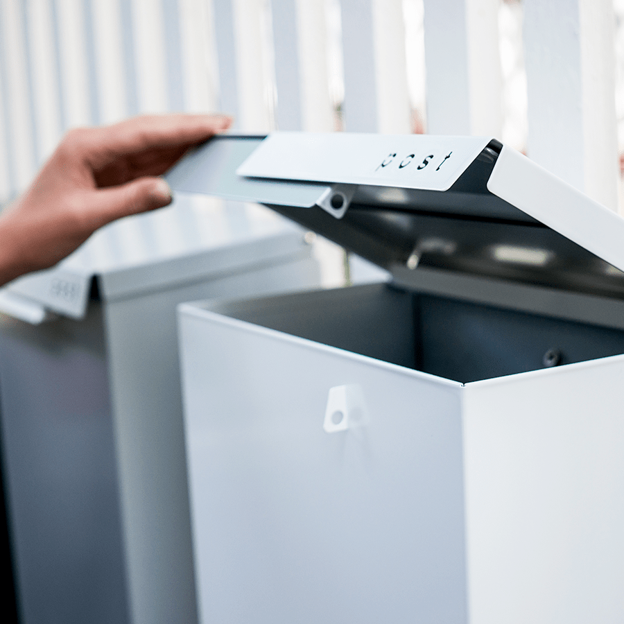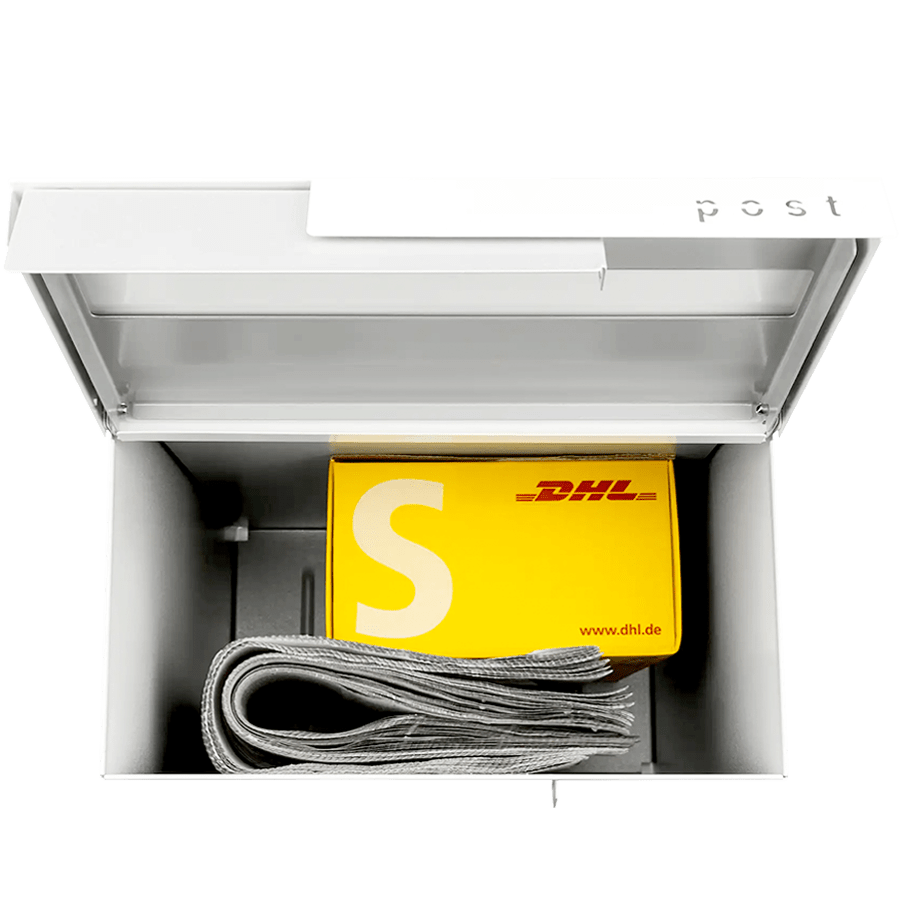 A silicone stopper ensures a low-noise and soft closing of the mailbox.