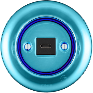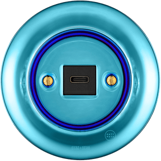 Porcelain USB-C charger.With glazed surfacein mirror-sky blue shade.With highly durable surface and color stability. CE conformity certificate. Decorative cover. Guarantee 50 years!