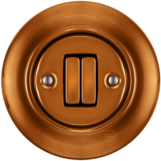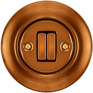 Interruttori retrò riprogettati prodotti in Europa da Katy Paty. Questo nel design in bronzo viene fornito con l'interruttore sottile. Realizzato in porcellana tradizionale che è inciso e resistente all'abrasione. I colori sono costanti e, a differenza dei colori della plastica, sono UV e Resistente alla polvere. Colore costante e superficie altamente resistente all'abrasione. Smaltato e realizzato a mano con la massima qualità lucida. CE certificato di conformità disponibile su richiesta. Copertura decorativa. Garanzia 50 anni.