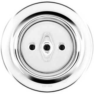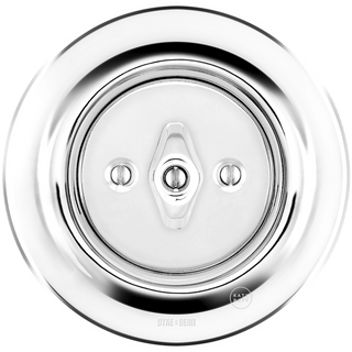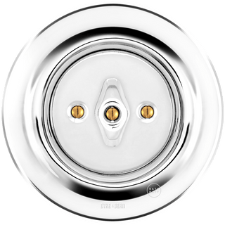 Interruttori retrò riprogettati prodotti in Europa da Katy Paty. Questo dal design cromato viene fornito con l'interruttore sottile. Realizzato in porcellana tradizionale che è inciso e resistente all'abrasione. I colori sono costanti e, a differenza dei colori della plastica, sono UV e Resistente alla polvere. Colore costante e superficie altamente resistente all'abrasione. Smaltato e realizzato a mano con la massima qualità lucida. CE certificato di conformità disponibile su richiesta. Copertura decorativa. Garanzia 50 anni.