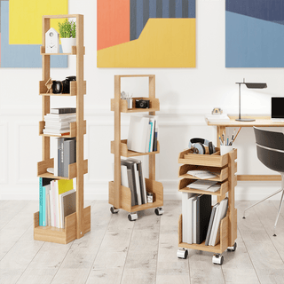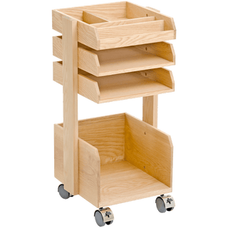 I due vassoi centrali forniscono spazio di archiviazione aperto facilmente accessibile e il ripiano di base può contenere fino a otto raccoglitori ad anelli A4, grandi libri o asciugamani e accessori.Due ruote sono dotate di freno per il fissaggio se necessario.