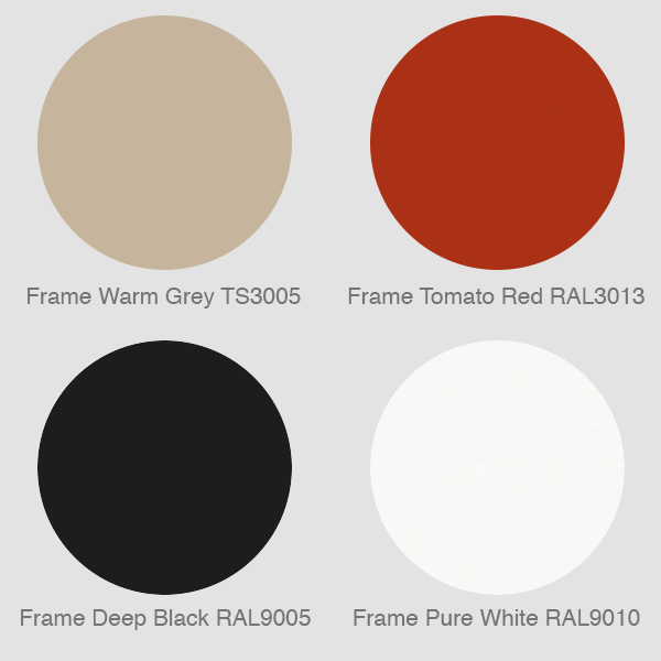 La sedia è realizzata con una struttura in acciaio verniciato a polvere, legno oliato o faggio tinto. Sedile e schienale in rete portante sintetica fine nera.