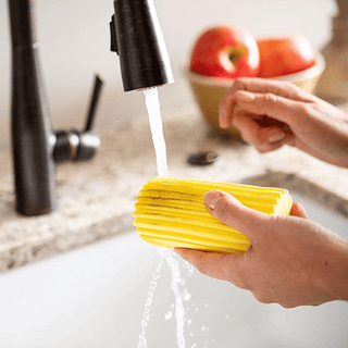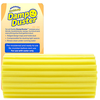 Under running water it rinses clean so you can use it time and time again. Perfect for blinds, vents, baseboard, railings, mirrors and more! Product arrives pre-moistened in packaging. Dampen with water before each use to soften foam.