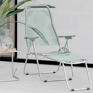 Il design della sedia è molto intelligente. Può essere un lettino o una sedia a sdraio con una parte anteriore pieghevole. La sedia è configurabile in 6 modi diversi con punti di regolazione nascosti nei braccioli.