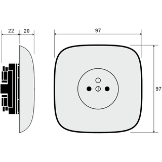 250V / 16A, the minimum pitch of centres of concealed installation boxes is 100mm (min.95mm), box depth is 43mm. Designed for cavity walls and solid walls. Add the wiring back box which is not included in the price.