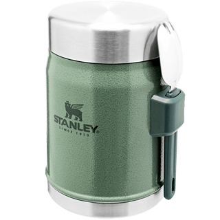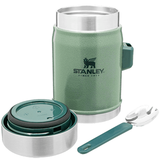 Questo barattolo di cibo in viaggio o in campeggio ha tutte le campane e i fischietti. Compatto, ma con molto spazio per la tua ricetta preferita calda o fredda. Un coperchio isolato con una valvola di rilascio della pressione per una facile apertura. E, ultimo ma non meno importante, uno spork in acciaio inossidabile che si inserisce saldamente nella staffa fissata sul lato. Buon appetito!
