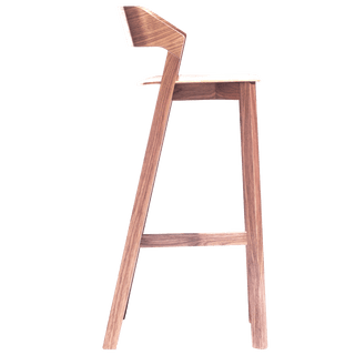 Lo sgabello da bar Merano combina il design del fondo in legno massello con forme armoniche di compensato curvato nella seduta e nello schienale. Grazie alla tecnologia produttiva utilizzata è notevolmente leggero e non contiene viti o pezzi metallici. Insieme alla sedia e allo sgabello basso da bar di design, crea un set con la poltrona Merano. Offriamo anche una versione imbottita