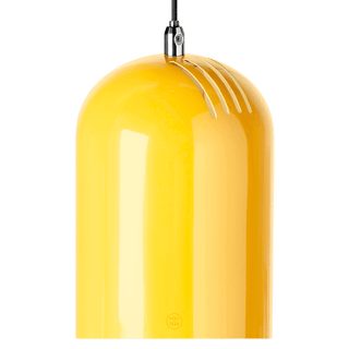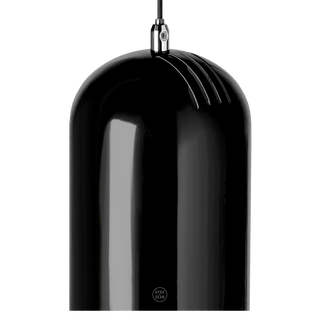 This lacquered metal ceiling lamp is available in a variety of colors and can be placed individually or in a group. It features a black fabric cord and ceiling rose, making it a versatile and stylish addition to any space.