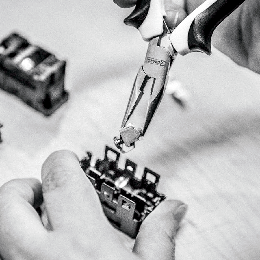 Prodotto appena sopra Barcellona in Spagna. L'azienda a conduzione familiare produce interruttori, prese e hardware dal 1955. I meccanismi elettrici moderni sono combinati con i processi di produzione tradizionali con una produzione in lotti limitati per ottenere gli standard più elevati.
