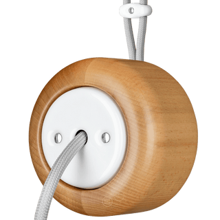 Re-designed retro cable gland socket in wooden design. Natural cream-white ceramic in combination with Beechwood outer. Variants GLOSS - high and finely varnished and MATT - high quality matt lacquer.
