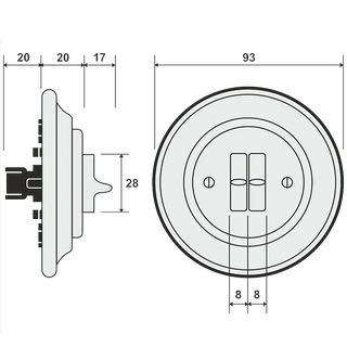 250 V / 16 A, il passo minimo dei centri delle scatole di installazione nascoste è 100 mm (min. 95 mm), profondità della scatola 68 mm. Progettato per pareti interrate e pareti piene. Aggiungere la scatola di cablaggio che non è inclusa nel prezzo.